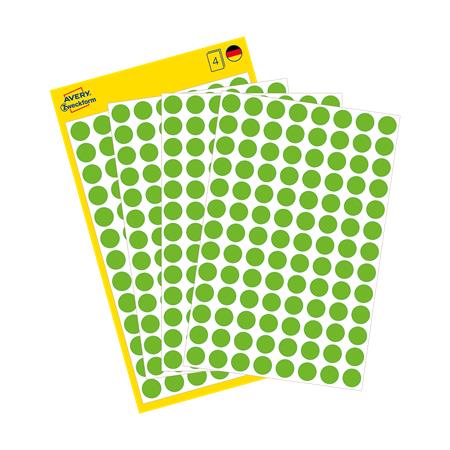 Etikett, 8 mm, kör, eltávolítható, AVERY ZWECKFORM, fűzöld, 416 etikett/csomag