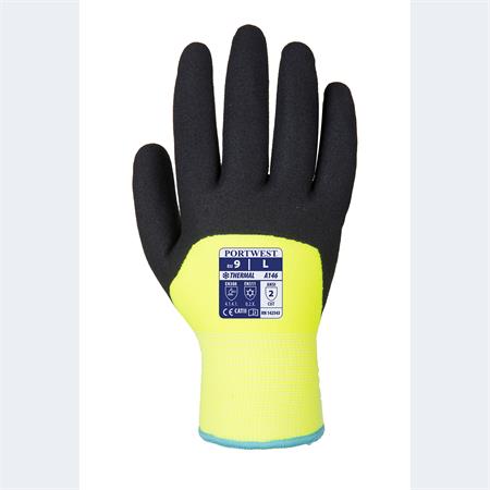 Védőkesztyű, téli, dupla bélés, nitril, mártott, M méret, sárga-fekete